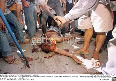 (C) 1998 AGAIN in Indonesia --the most brutal so far. It was reported to have Military involvement in order to create chaos as an excuse for attempted Coup d'etat. Murder and brutal rape with objects have been recorded by Third Party Institutions.