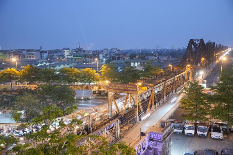 This photo taken on April 9, 2025 shows a view of Long Bien Bridge, a historic bridge across the Red River, in Hanoi, Vietnam. [Photo/Xinhua]